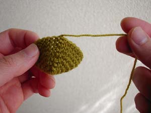 すごーく簡単です。最後まで編み終わったら、かぎ針をはずす前に糸を長めに(40センチもあれば大丈夫)残して切ります。切ったら、