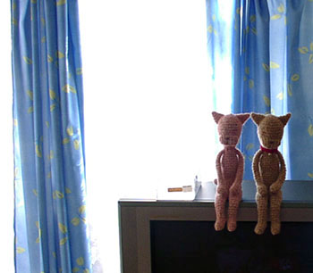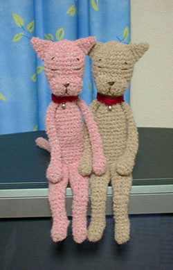 ばんごはんのころ すこしだけ なかよしになりました〈ピンキー T〉〈ピンキー A〉 by nekoyama / 2002.3 撮影 by nekoyama & ke~mu