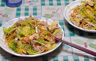 はい できましたよっ かたやきそば〈ケ~ム〉 by nekoyama / 2002.1 撮影