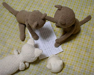 「 やっぱ むりだよぅ~ 」〈ゴロスケ〉〈かち〉〈カーター〉〈ふたご〉 by nekoyama / 2002.1 撮影