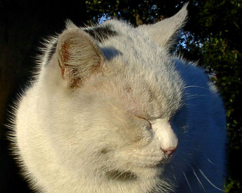 「 なっ なんだいっ! みけねこぉ~ 」呼び名〈おやつ〉〈きょうりゅう〉 / 2002.1 撮影