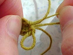 Pull the edge of the yarn again to tighten the remaining loop.