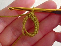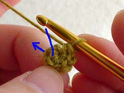 - いちばんはじめにくさり編みをしないで、こま編みを編み始めます。(写真2から)